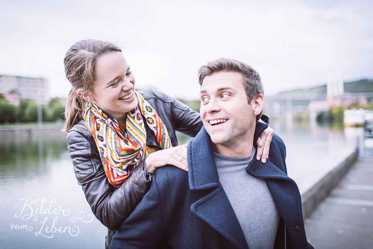 Noch ein Paar, dass uns bereits von einer Hochzeit kannte und uns daraufhin engagiert hatte. Zum Probeshooting traf ich Imke und Uwe in Würzburg. An der Mainpromenade, ein paar Meter neben der völlig überfüllten alten Mainbrücke, fanden wir unsere Location. Dort liegt ein alter Kutter, der zu einem wunderbaren, schwimmenden Fischimbiss umfunktioniert worden ist. Davor und vor allem darauf hatten wir viel Spaß und einen sehr schönen Abend mit Fotos und Abendessen. B.t.w. wer da mal vorbeikommt, sollte unbedingt „Fish and Chips“ mit gebackenem Wells probieren – wahnsinnig lecker.