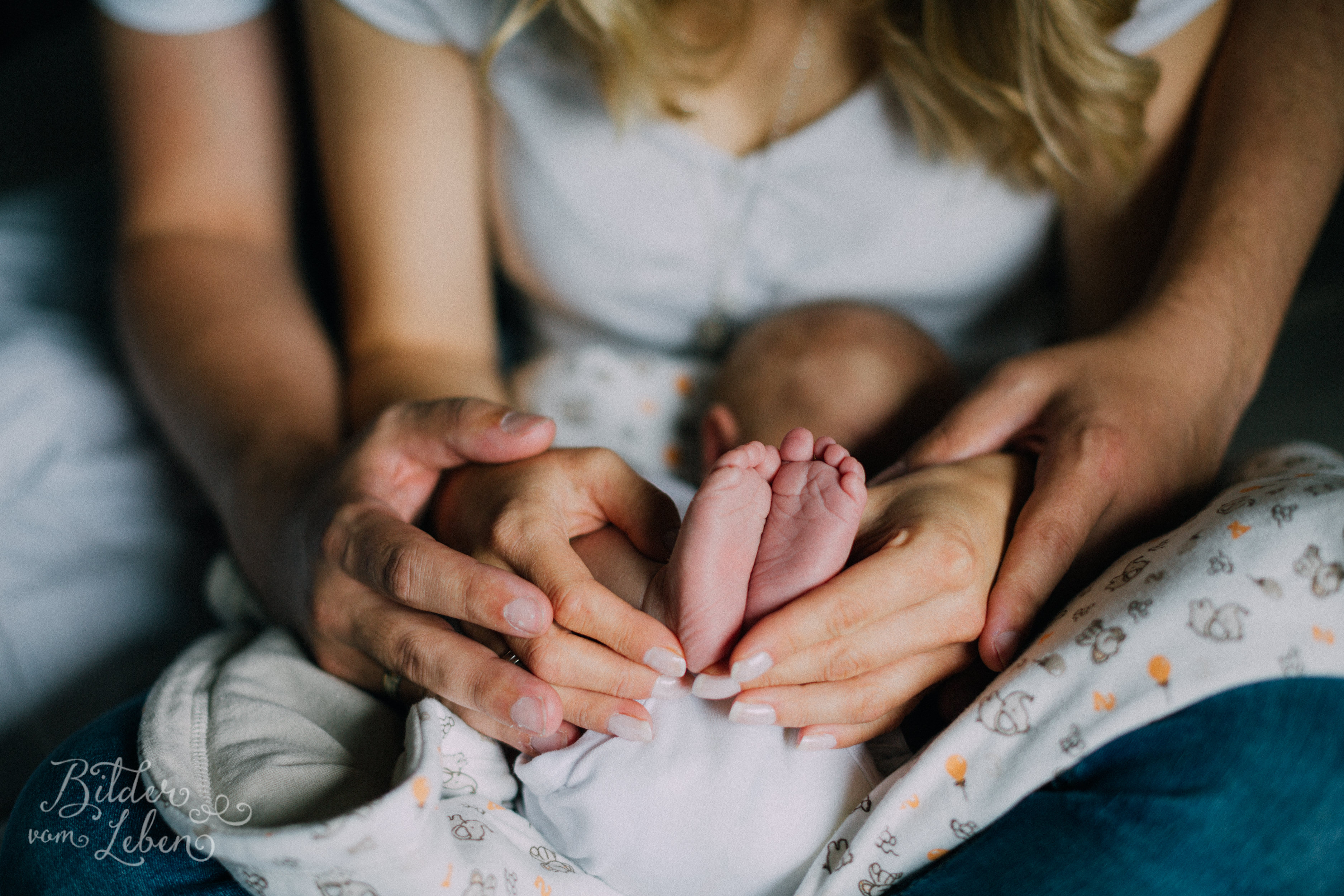 Ohhhh – ich war wieder im Babyfieber. Anne und Basti kennt ihr ja schon von den Babybauchbildern im Frühjahr. Damals war schon klar, dass wenn ihre kleine Tochter auf der Welt ist, wir eine Homestory zusammen machen würden. Irgendwann im Juli war es dann soweit. Allerdings hat die süße Maus bei meinem Besuch so fest geschlafen, dass wir schon dachten, es gäbe gar keine Fotos von ihr auf denen sie nicht selig schlummert. Erst als ihr Papa zur Gitarre gegriffen hat, und ihr (natürlich ohne Verstärker) ein paar süße Melodien vorgespielt hat, wurde sie langsam wach. Ja, Basti ist Gitarrist bei den El pipos in di ohros, einer ziemlich coolen Lokalband aus der Ansbacher Ecke. Wenn ihr also mal ein paar Mexikaner coole Mucke machen hört, dann schaut doch mal nach, ob euch nicht einer davon bekannt vor kommt ;) Aber, ich schweife wieder mal ab… Ihr sollt doch Babybilder schauen :* Viel Spaß mit der süßen jungen Familie <3