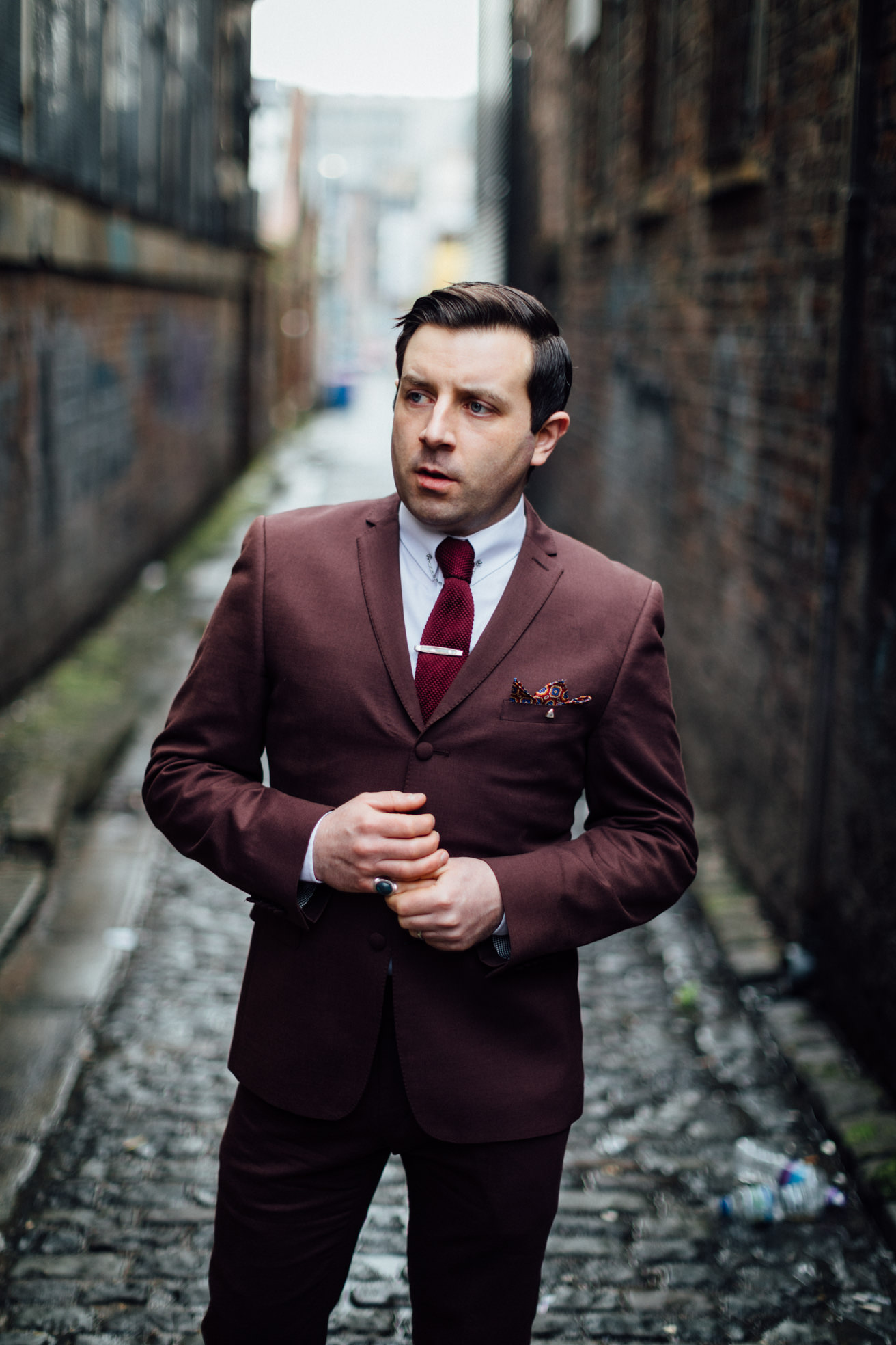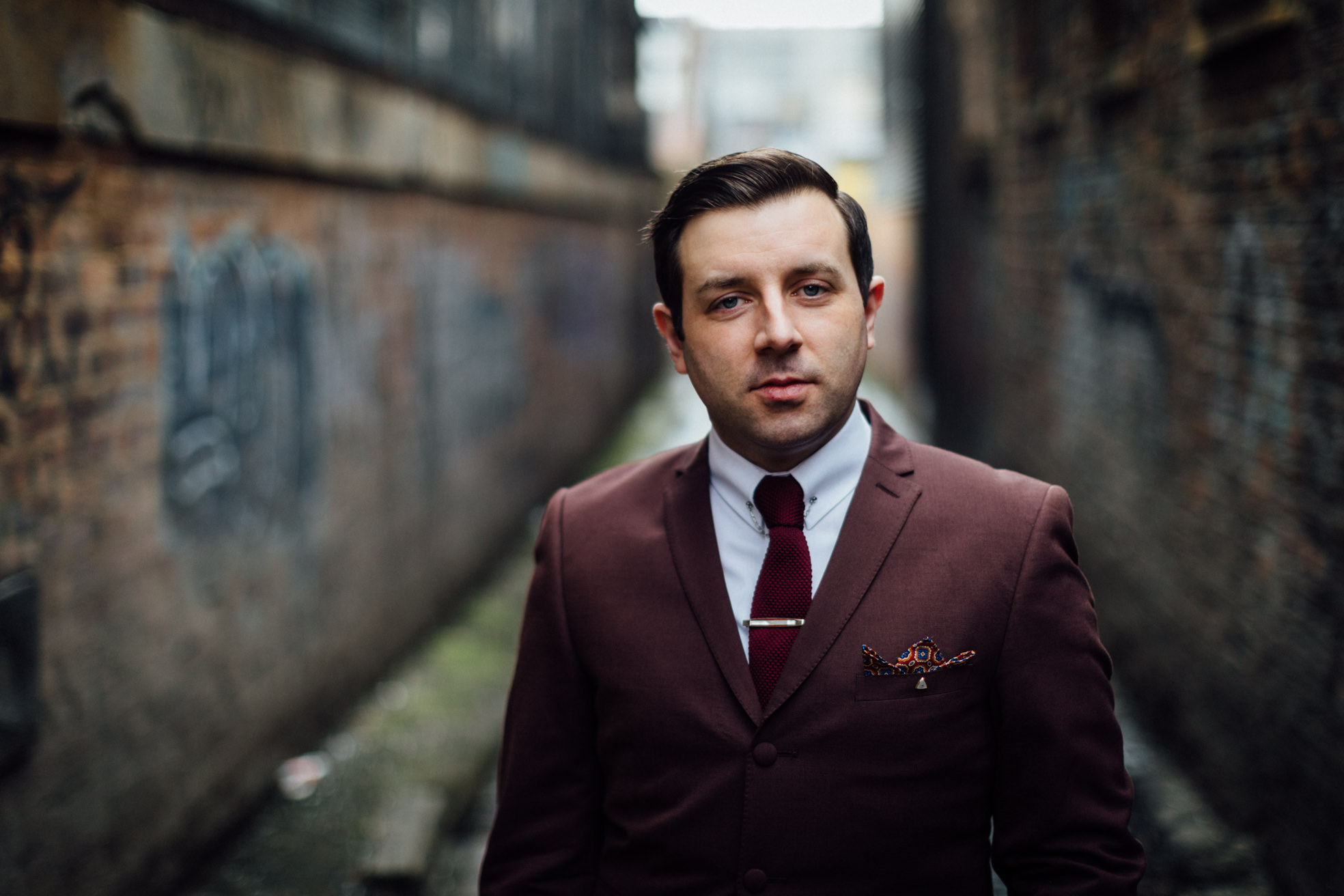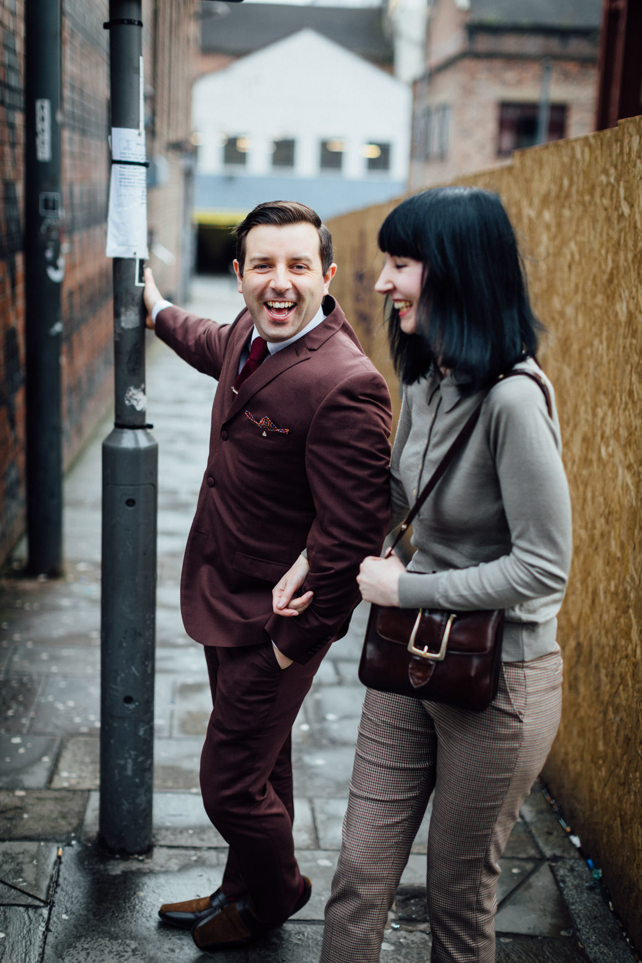 Für diese Gelegenheit schleppten sie mich dann am Sonntag Abend ins „EBGBs“ in Liverpool, nicht weit vom Hafen aber für Ortsunkundige eher nur durch Zufall zu finden. Das EBGBs ist ein krasser Laden. Voll mit sprichwörtlich freundlichen „Northeners“ (wie wir übrigens überall in Liverpool superfreundliche Leute getroffen haben, auch im Straßenverkehr fällt das auf). Die Musik war ein Mix aus 60er Soul und Alternative Rock, genau mein Ding. Zum Fotografieren war der Laden aber leider zu dunkel. Dafür fand ich hinter dem Club diese Gasse, wo wir perfektes Licht und ein bisschen Ruhe hatten um schöne Portraits zu machen.